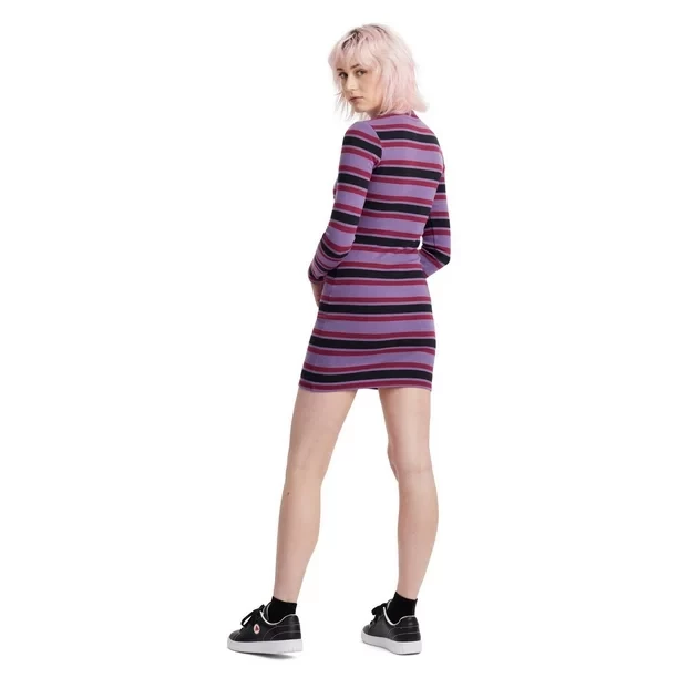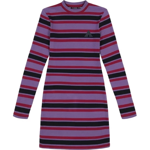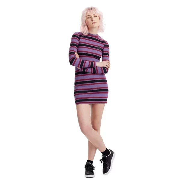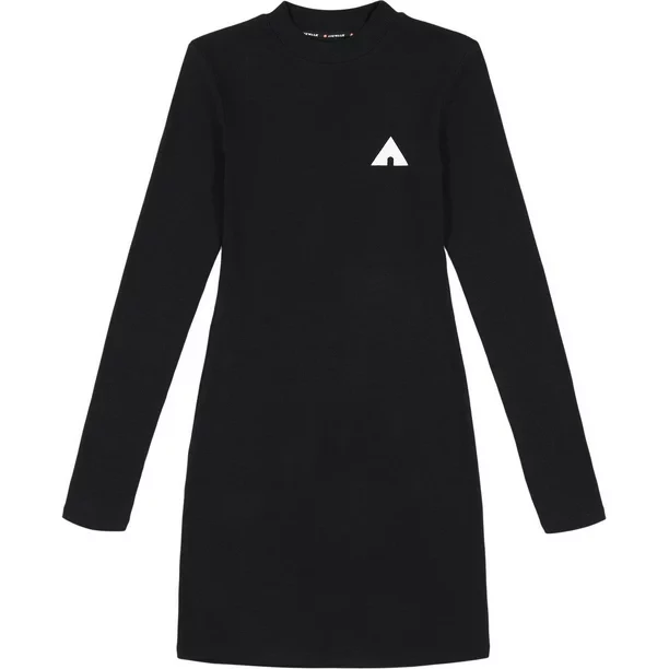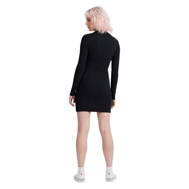 Casual meets effortlessly cool with our versatile high-neck fitted dress. Pair this curve-hugging ribbed piece with sneakers for a streetwear look or dress it up for a night on the town. The cotton and spandex blend ensure this long-sleeve dress is soft, comfortable and easy to wear. Our signature logo on the front adds interest.