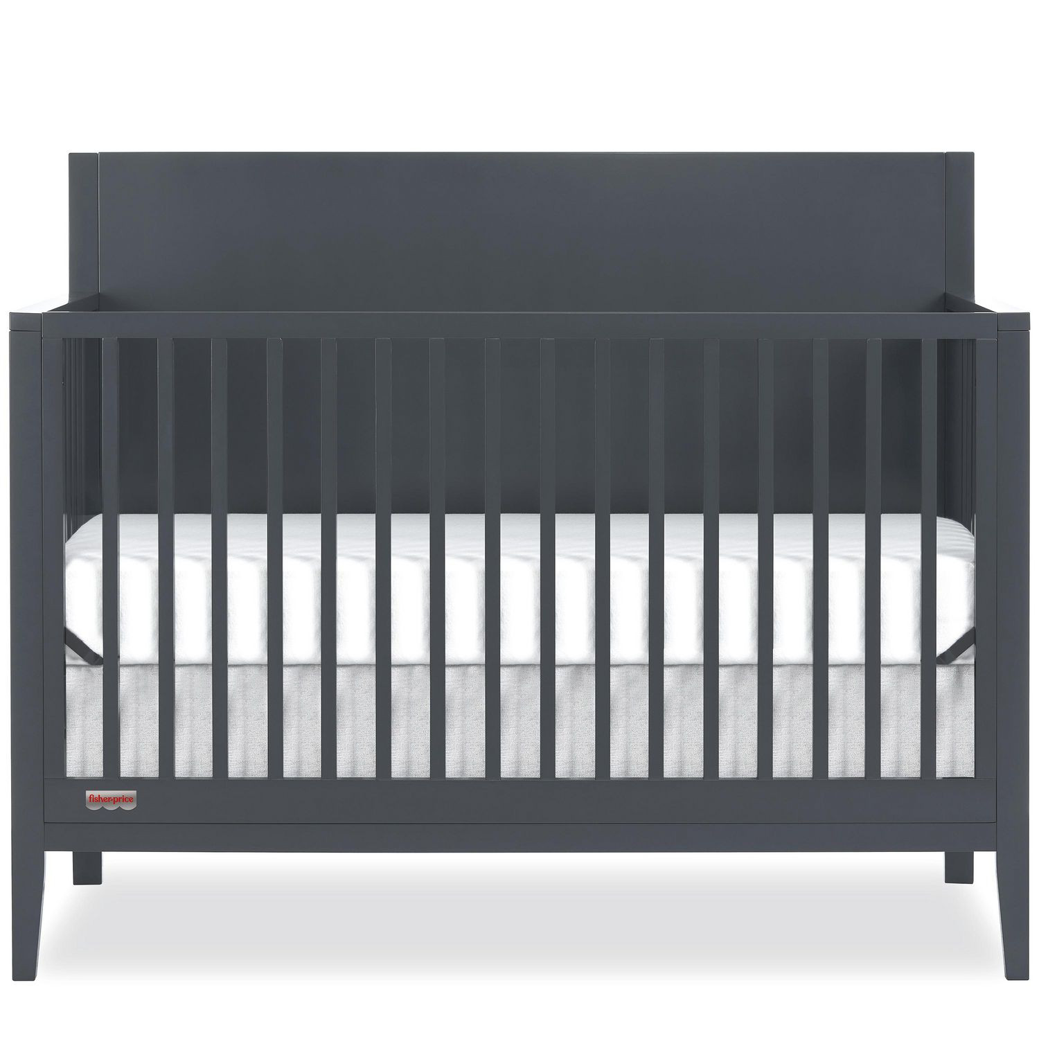 Be it some restful downtime or fun-filled playtime, your little dreamer deserves only the best. And that’s exactly what the all-new Fisher-Price by Dream On Me Delani 5-in-1 Convertible Crib brings - a snug oasis for ultimate relaxation! Crafted to seamlessly grow along with your little one, this crib transitions to a toddler bed, daybed and full-size bed (Conversion kit sold separately). With your child’s safety being our top priority, the Fisher-Price by Dream On Me Delani 5-in-1 Convertible Crib is JPMA & Greenguard Gold certified and meets/exceeds ASTM and CPSC standards. Built with sustainable New Zealand Pinewood and sturdy wooden spindles, this durable crib is complete with a child-safe, non-toxic finish. Easy to spot or wipe clean, the Fisher-Price by Dream On Me Delani 5-in-1 Convertible Crib involves very low maintenance. Available in 4 versatile, pleasing finishes - Carbon, White, Matte Black & Grey, bring this wonderful haven of comfort and joy into your child’s life. Product dimensions are 54 1/2" L x 29 5/8" W x 44 3/8" H, with a weight of 72.75 Lbs and a maximum weight limit of 50 Lbs.