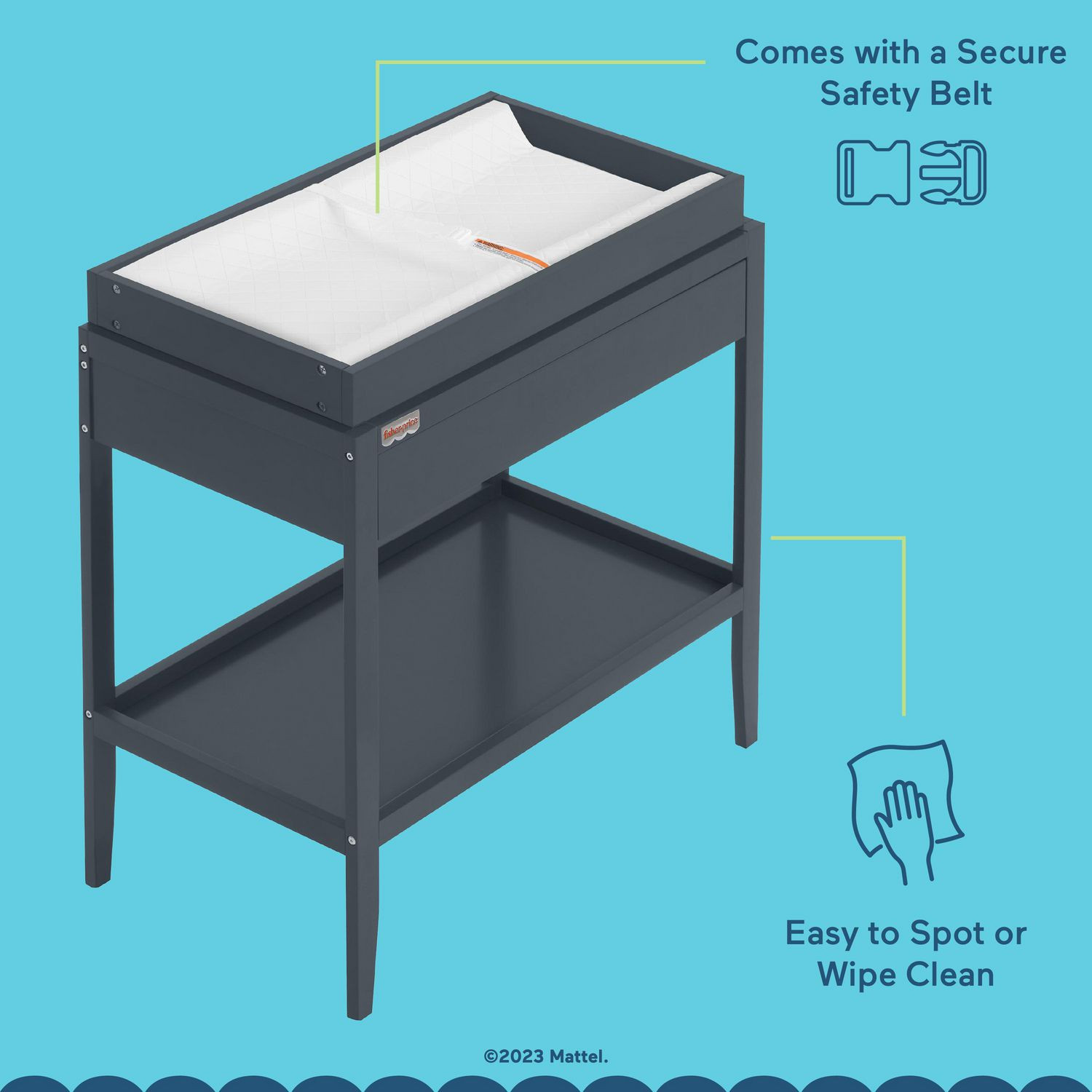 SAFETY FIRST: For your child’s complete safety, the Fisher-Price by Dream On Me Delani Changing Table meets/exceeds the ASTM & CPSC standards, and comes with an anti-tipping kit.