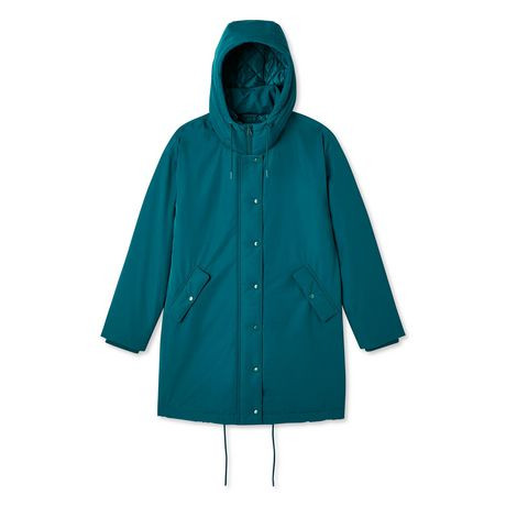 Stay covered this season with No Boundaries women’s long jacket. Made of a water-repellent material, it’ll help keep you dry and warm when it’s raining or snowing outside. The jacket is designed with a hood with drawcord, long sleeves, dropped shoulders, ribbed storm cuffs, a full-zip closure, a snap-button storm placket to help block cold winds, 2 flap pockets, and a long length to keep your body warm.